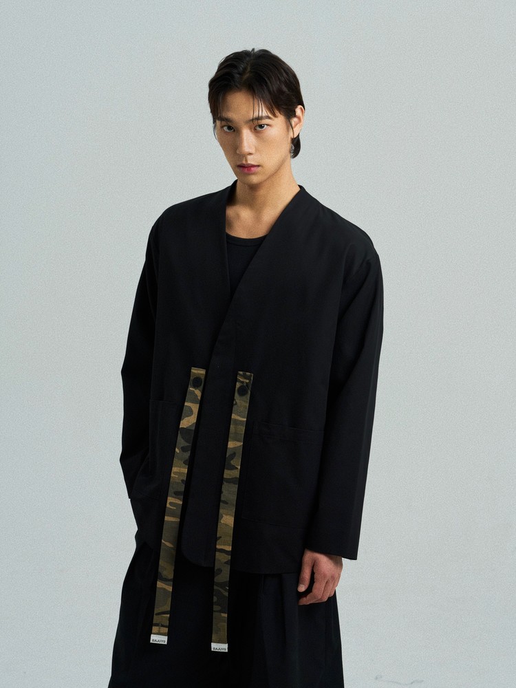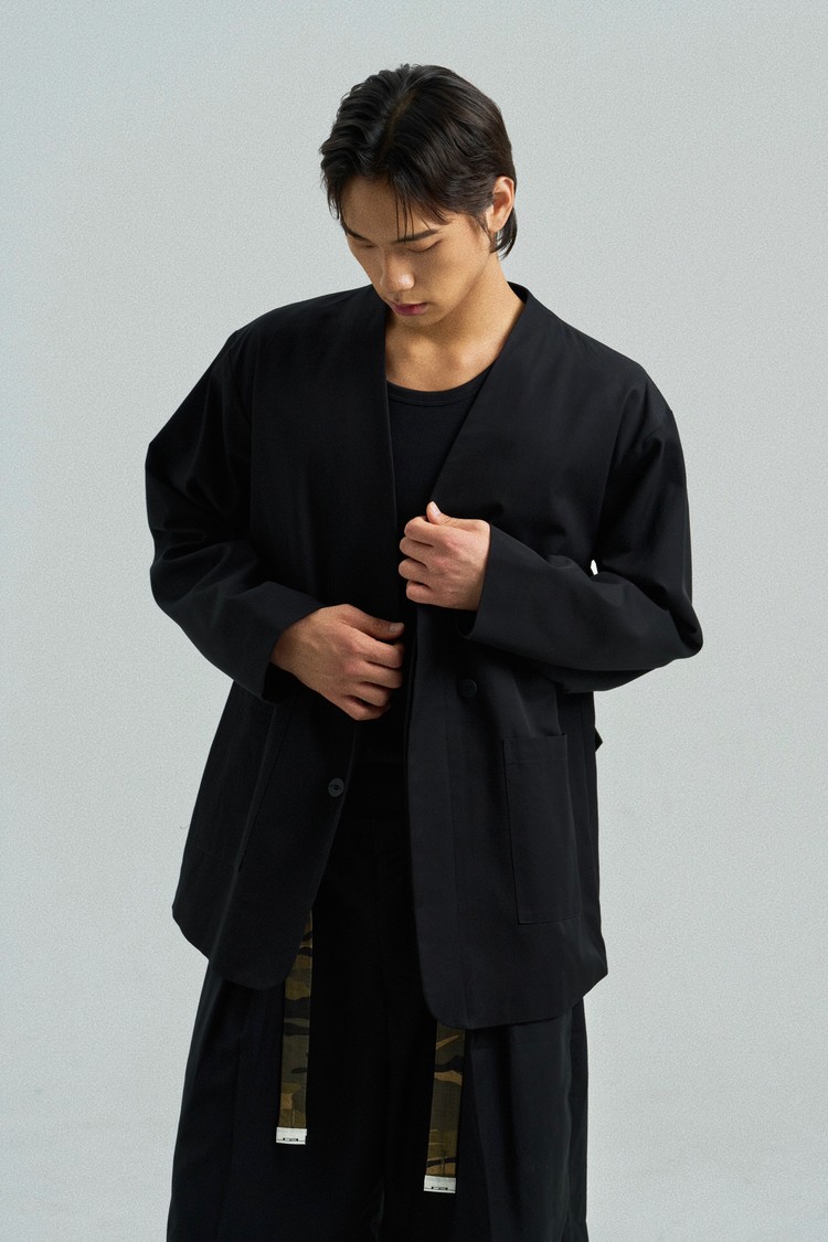 Goreum Type 1 (Sand Camo) is a detachable module designed for the Modular Blazer Type 1. The sand-toned camouflage texture adds a subtle strength to its structured silhouette.